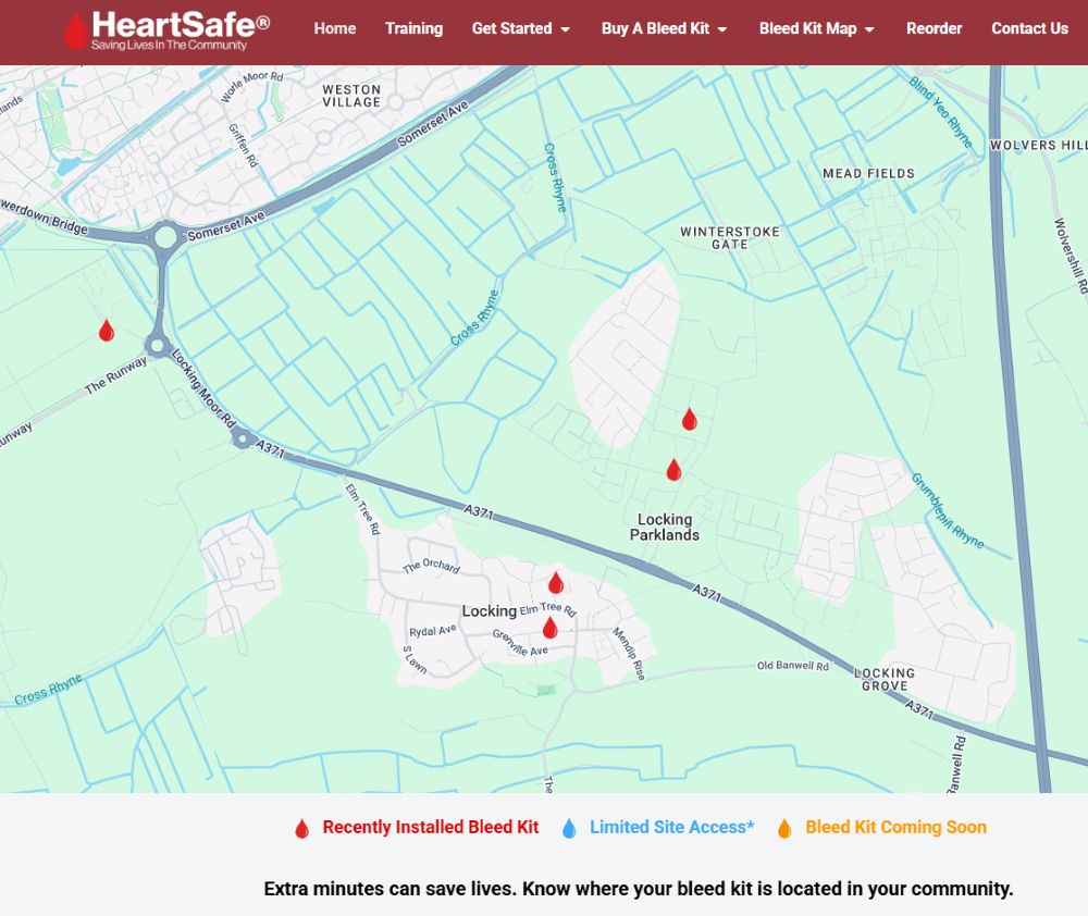 To find out where you nearest bleed kit is visit Bleed Kit Map | HeartSafe® AED Locator