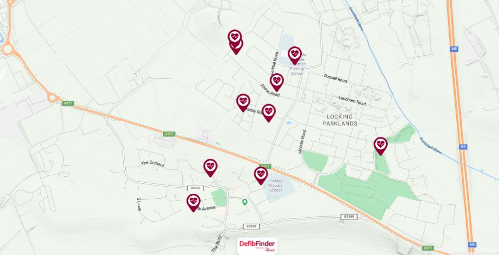 here is a defibrillator and bleed kit situated at the front of Locking Parish Hall.